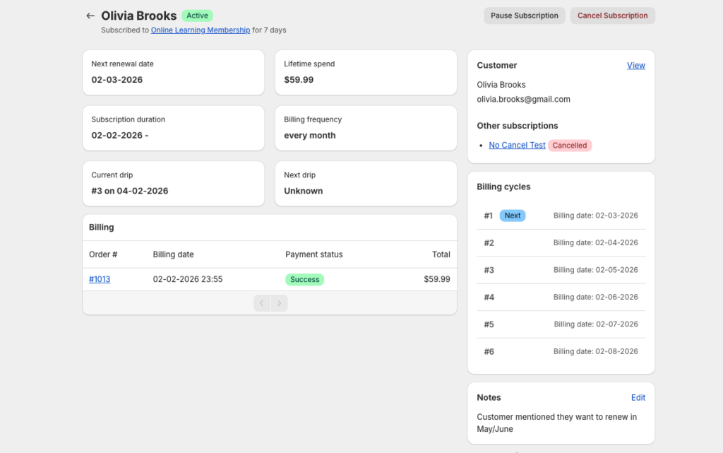 This is especially useful for subscriptions with frequent renewals or custom billing intervals.
