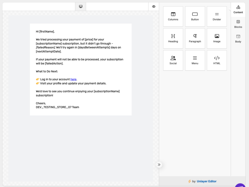 - Edit the email body content