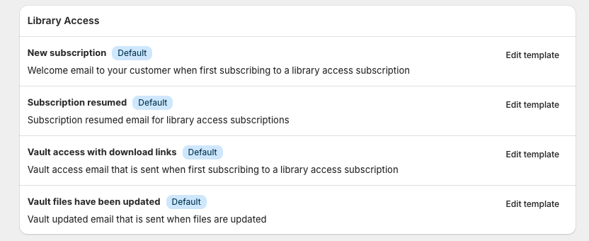 Content Vault provides different email templates depending on the subscription type and event.