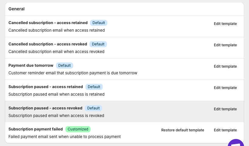 - Subscription resumed – sent when a paused subscription resumes