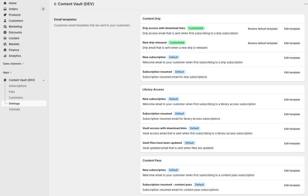 Content Vault → Settings → Email Templates