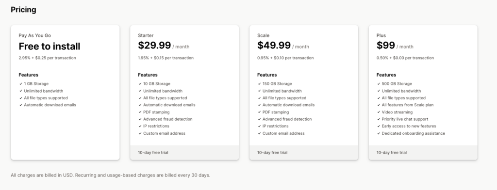 Pay As You Go Best for stores just getting started with digital downloads or testing their subscription model.