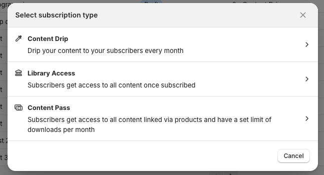 - Choose the right subscription type (Drip, Library Access, or Content Pass)