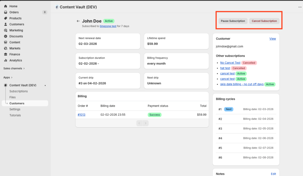 - Pause subscription (if supported by your workflow)