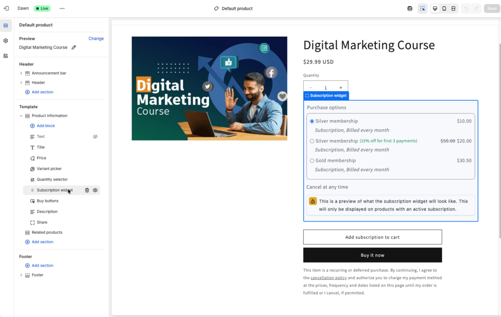- Add the subscription to cart