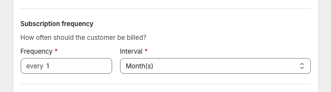 Every 1 Month→ Monthly subscriptionEvery 1 Year→ Annual subscriptionEvery 3 Months→ Quarterly subscription