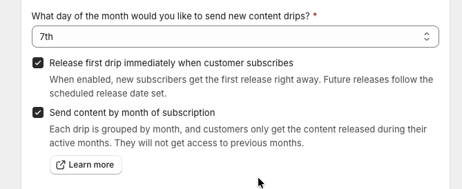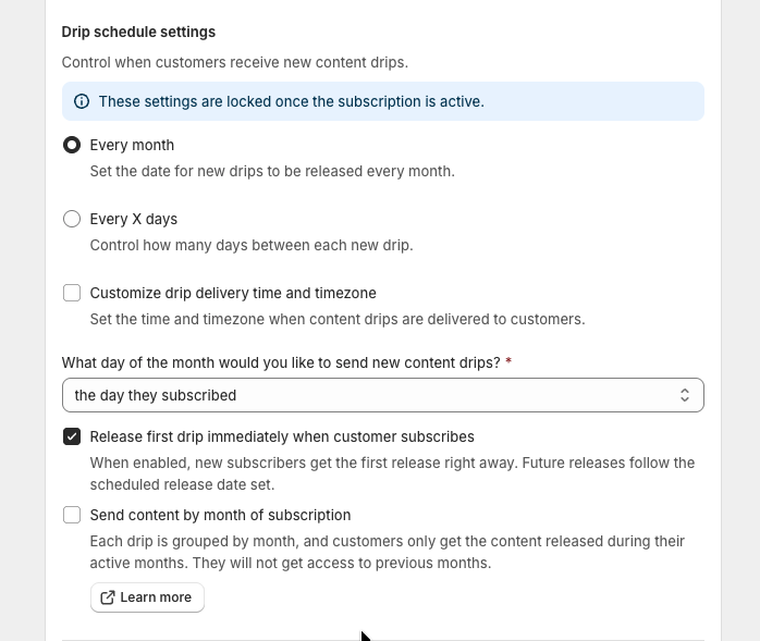 ⚠️ Note: Drip schedule schedule settings are locked once the subscription is active.