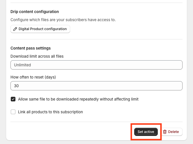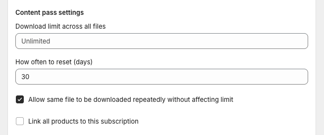 A Content Pass Subscription lets you offer subscribers a limited number of downloads per billing cycle instead of unlimited access.