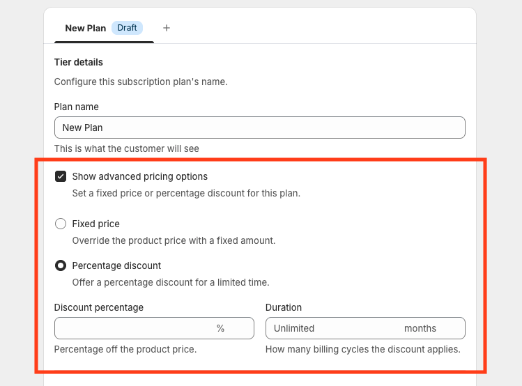 Under Duration, choose how many billing cycles the discount should apply.