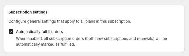 Choose whether to automatically fulfill subscription orders.