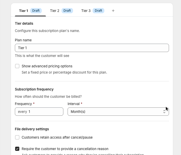 Set how often customers are billed for this tier.